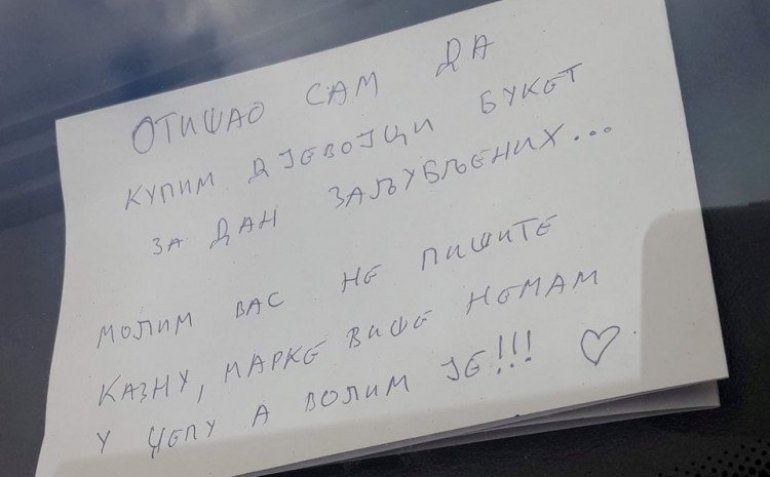 - Отишао сам да купим девојци букет за Дан заљубљених... Молим Вас, не пишите ми казну, марке више немам у џепу, а волим је - пише на поруци.
