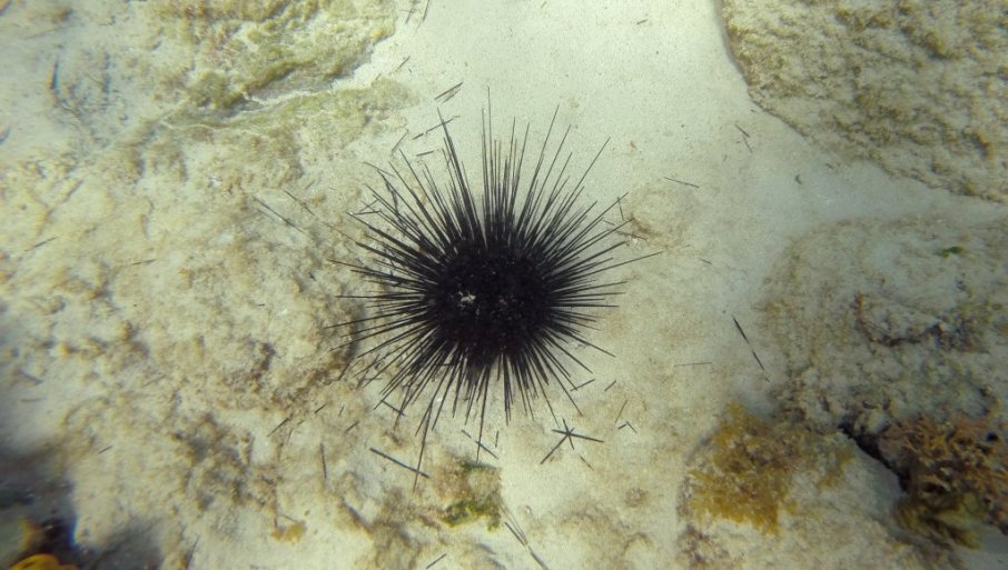 Морски јежеви са дугим бодљама скривају се у гребенима широм Карипског мора и имају кључну улогу као „косилице“ гребена, јер једу алге које расту на коралима, указала је Брајтбартова.