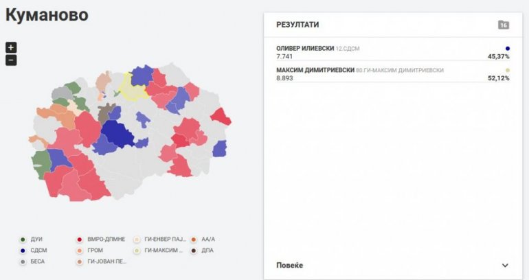 НЕЗАВИСНИ кандидат Максим Димитриевски, испред странке „За наше Куманово“, који се отцепио од Зорана Заева побеђује убедљиво у Куманову у другом кругу локалних избора.