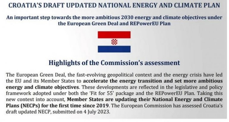 Реч је о документу у којем Европска комисија оцењује хрватски нацрт ажурираних Националних енергетских и климатских планова (НЕЦП), који је поднесен 4. јула ове године.