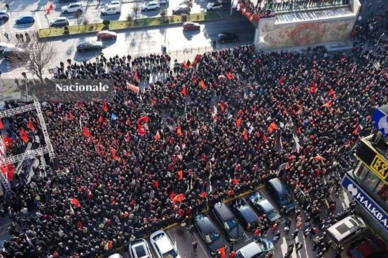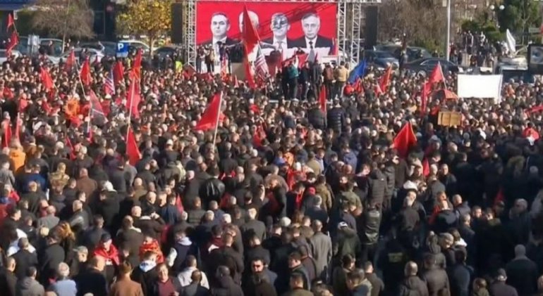 НЕКОЛИКО хиљада Албанаца из Северне Македоније и Косова и Метохије окупило се на Тргу Скендербег у Скопљу у знак подршке бившим лидерима такозване ОВК којима се суди у Хагу.