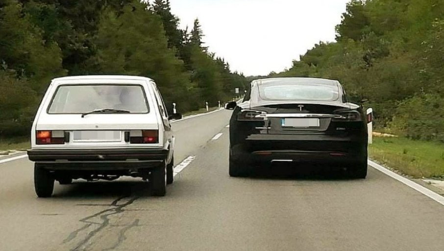 На њој се види Југић задарских таблица како претиче електрично чудо Елона Маска - "Теслу":