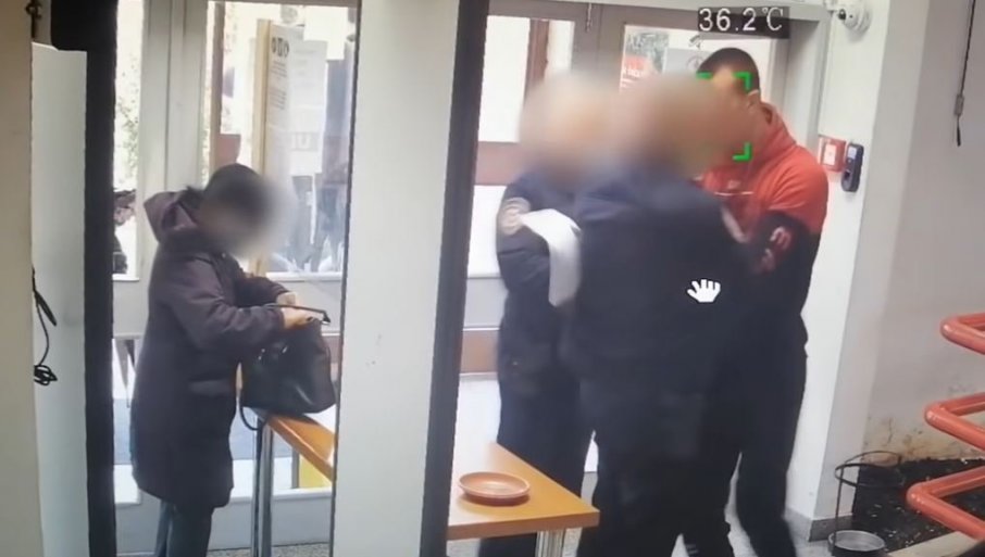 Младић је, како се види, ишао према излазу. Није имао маску, а приговорио му је један полицајац. Али онда га је други полицајац зграбио за руку и ту је сукоб почео. Човек је, како се види на снимку, ухватио полицајца за врат. Али одмах су га садвладала три полицајца.
