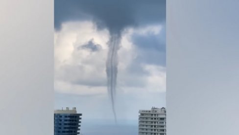 МОЋНИ торнадо се појавио јутрос поред обале Сочија. Водени стуб се формирао у мору и убрзо је нестао. Туристи и локално становништво су успели да сниме ову временску непогоду.
