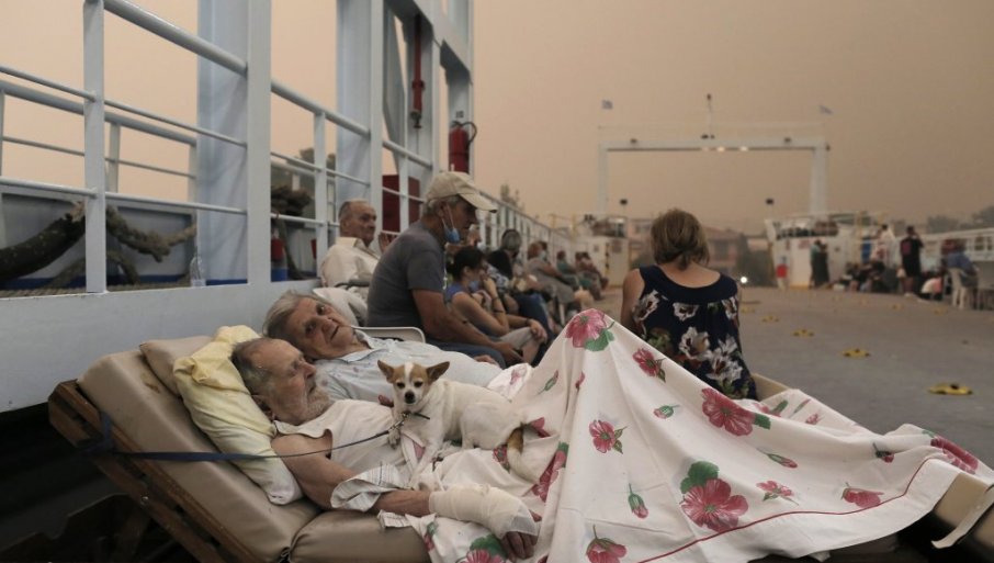 Евакуација становника Евије који су понели само свог љубимца / Фото ЕПА