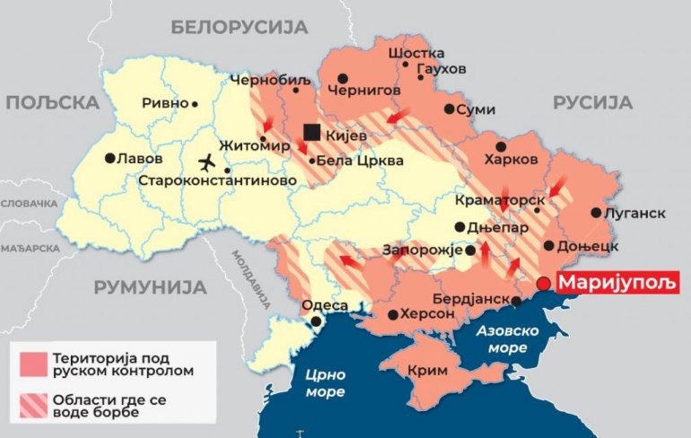 Јединице Доњецке народне републике стежу обруч око града Маријупољ у ком се налазе националистички батаљони "Азов" и "Ајдар". Већ је освојен периферни део Маријупоља, Стари Крим. Из Маријупоља је у недељу пре подне успело да изађе споредним опутевима око 300 грађана. И у недељу су руске оружане снаге објавиле у подне "тишину" да би грађани могли да изађу из Маријупоља, али се са тиме нису сагласили командири националистичких украјинских батаљона, па је пропао још један покушај евакуације из овог опкољеног града.