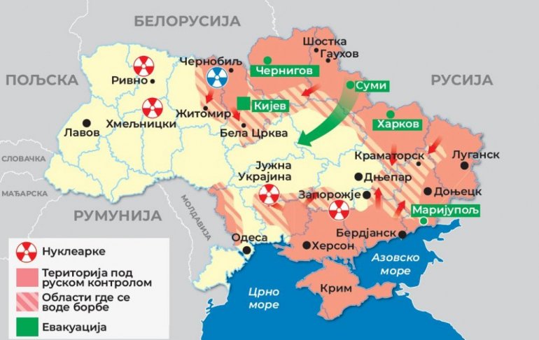 Министарство одбране Русије на својим брифинзима свакодневно саопштава о новим местима која је освојила руска војска. Највећи градови, осим Лавова су опкољени. И у среду је проглашен прекид ватре да би грађани од 10 сати могли да изађу из опкољених градова. Нуде им се правци у Русију и на западни део Украјине. Било је најављено да ће се цивили евакуисати кроз шест "хуманитарних коридора", али до поподнева је била извесна једино евакуација из града Суми.