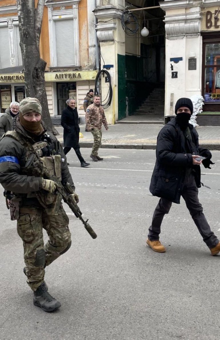Леви, који се увек појављује тамо где стиже америчка "демократија", обично уз бомбе и тенкове, прошетао се кроз град са Максимом Марченком, гувернером Одеске области и бившим командантом националистичког батаљона "Ајдар".