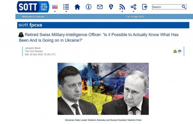"Покушајмо да испитамо корене украјинског сукоба. Почиње од оних који последњих осам година говоре о „сепаратистима“ или „независницима“ из Донбаса. Ово је погрешан назив. Референдуми које су спровеле две самопроглашене републике Доњецк и Луганск у мају 2014. нису били референдуми о „независности“, како су тврдили неки бескрупулозни новинари, већ референдуми о „самоопредељењу“ или „аутономији“. Квалификатор „проруски“ сугерише да је Русија била страна у сукобу, што није био случај. Штавише, ови референдуми су спроведени противно савету Владимира Путина", наводи швајцарски обавештајац у тексту од 2. априла ове године.