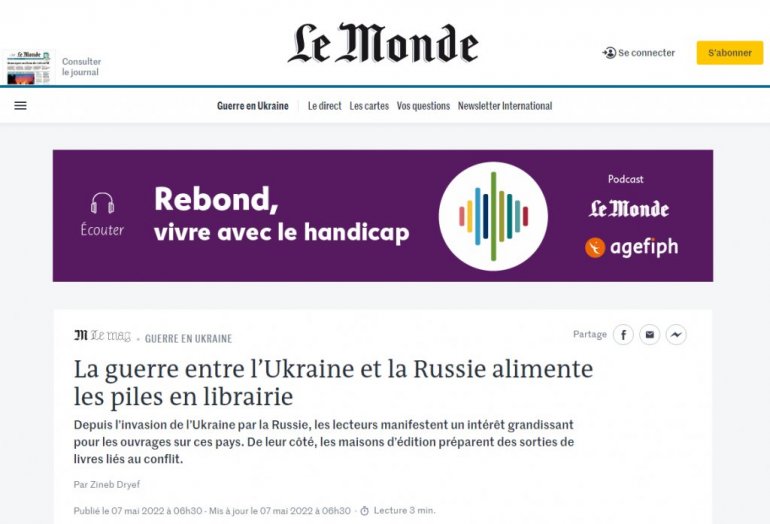 У ФРАНЦУСКИМ књижарама влада повећано интересовање за дела руске и украјинске књижевности, пише лист "Ле монд".