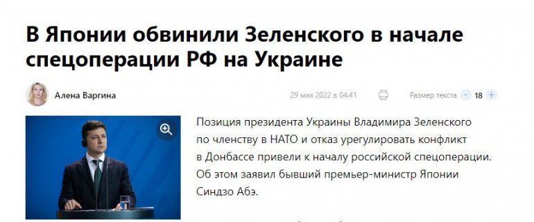 СТАВ украјинског председника Владимира Зеленског о чланству у НАТО-у и одбијању да се реши сукоб у Донбасу довели су до почетка руске специјалне операције. Ово је изјавио бивши премијер Јапана Шинзо Абе, преноси руски сајт "Ура.ру".