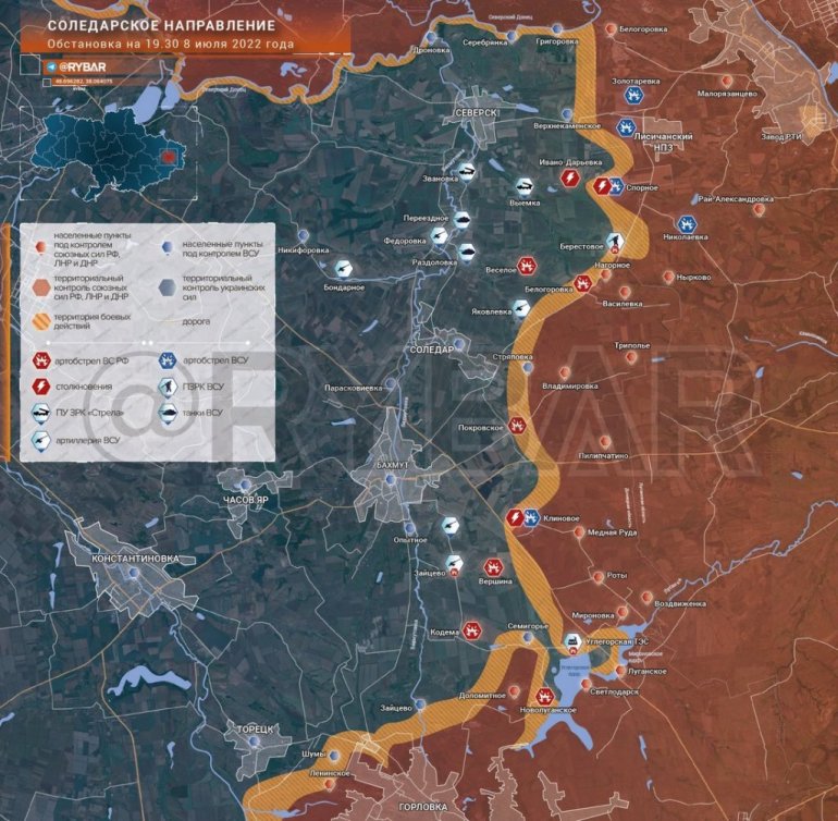 На телеграм каналу rybar дат је приказ стања на совом делу фронта.