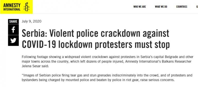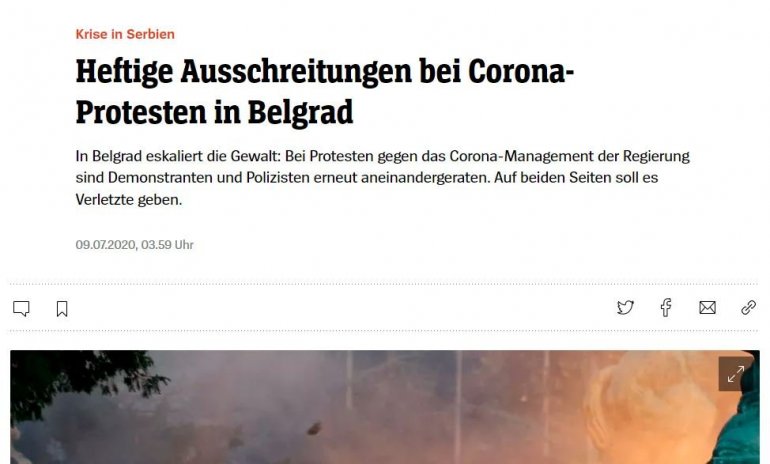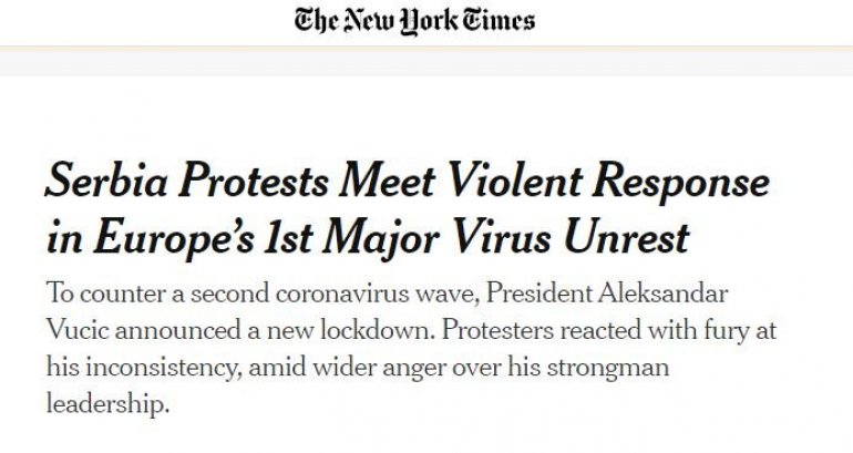 Тако је Њујорк Тајмс писао да је на протесте у Београду брутално одговорено, називајући насилне демонстрације "првим великим европским вирусним устанком".