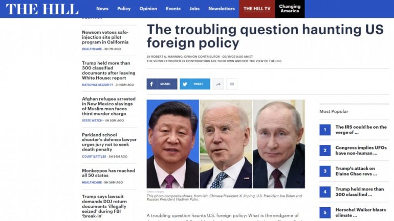 Према његовом мишљењу, Вашингтон води агресивну спољну политику према Кини, али се не усуђује да директно интервенише у руској специјалној операцији.