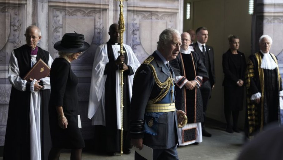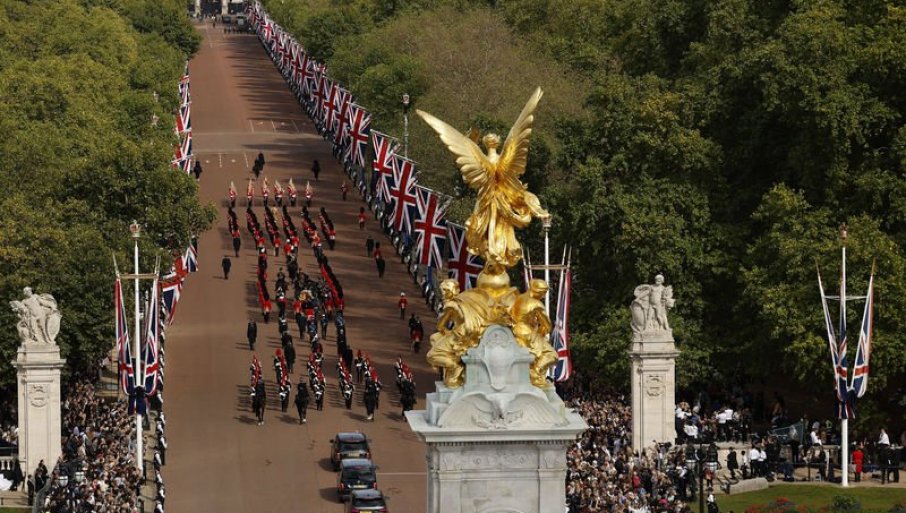 Краљ Чарлс Трећи, његови синови принчеви Вилијам и Хари, као и други чланови краљевске породице, ходали су иза ковчега, који ће на у Вестминстерској опатији остати четири дана, све до сахране краљице у понедељак, преноси АП.