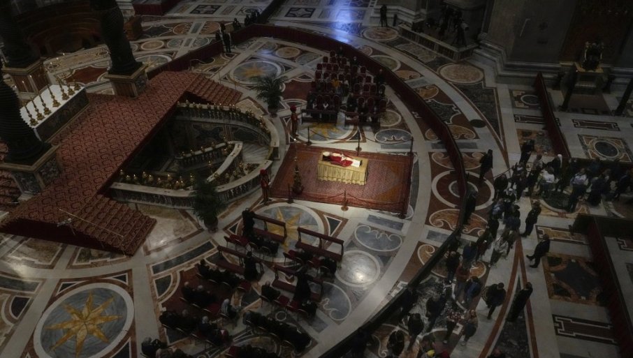 Његово тело изложено је у отвореном ковчегу у базилици Светог Петра, где хиљаде верника долазе да одају пошту, пренео је АП.