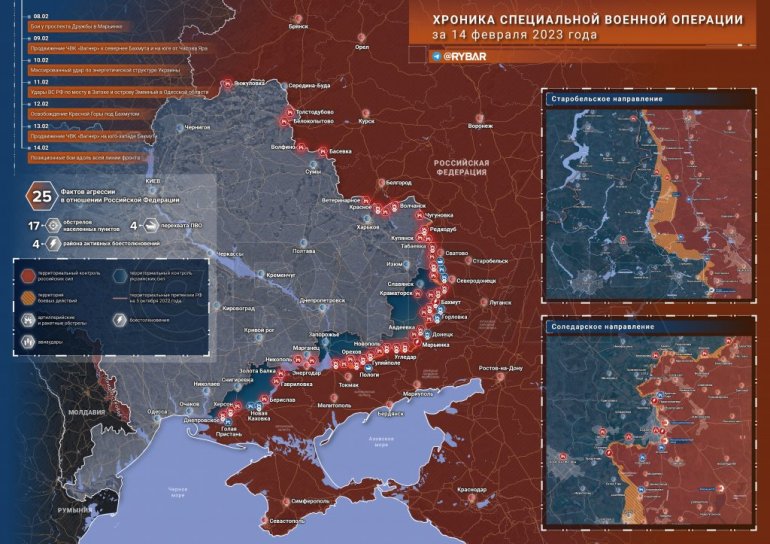 Дана 14. фебруара, у ваздушном простору Украјине забележени су ваздушни циљеви попут балона са угаоним рефлекторима које је лансирао непријатељ, саопштио је Јуриј Игнат, портпарол ратног ваздухопловства Оружаних снага Украјине.