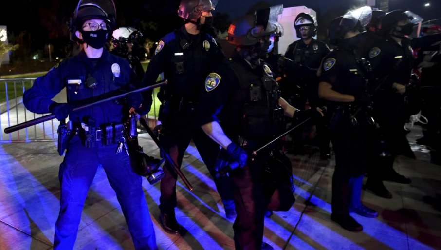 Полиција је већ привела неколико људи док зградом одјекују повици "примирје сада", преноси Фокс њуз.