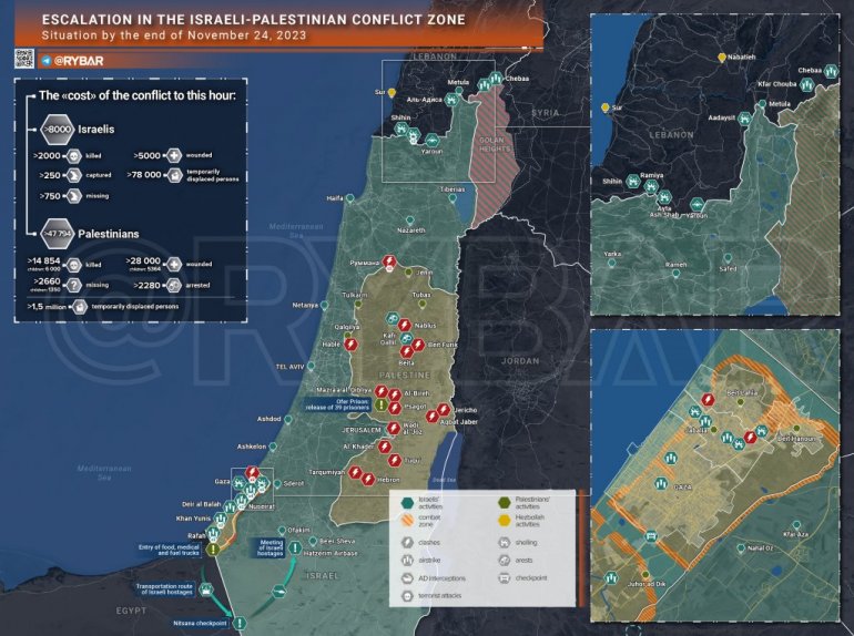 У оквиру споразума о хуманитарној паузи, који су постигли Хамас и Израел, 39 палестинских затвореника у израелским затворима, укључујући 24 жене и 15 деце, премештено је из затвора Дамон и Мегидо у Израелу у затвор Офер на Западној обали и очекује се њихово ослобађање.