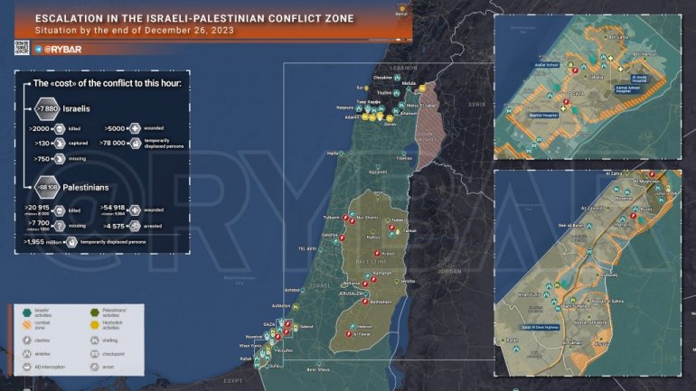 Израелске трупе настављају да напредују дубље у урбана подручја и на северу и на југу појаса Газе. Међутим, с обзиром на недостатак интернета, још увек је изузетно тешко утврдити тачну конфигурацију предње стране.