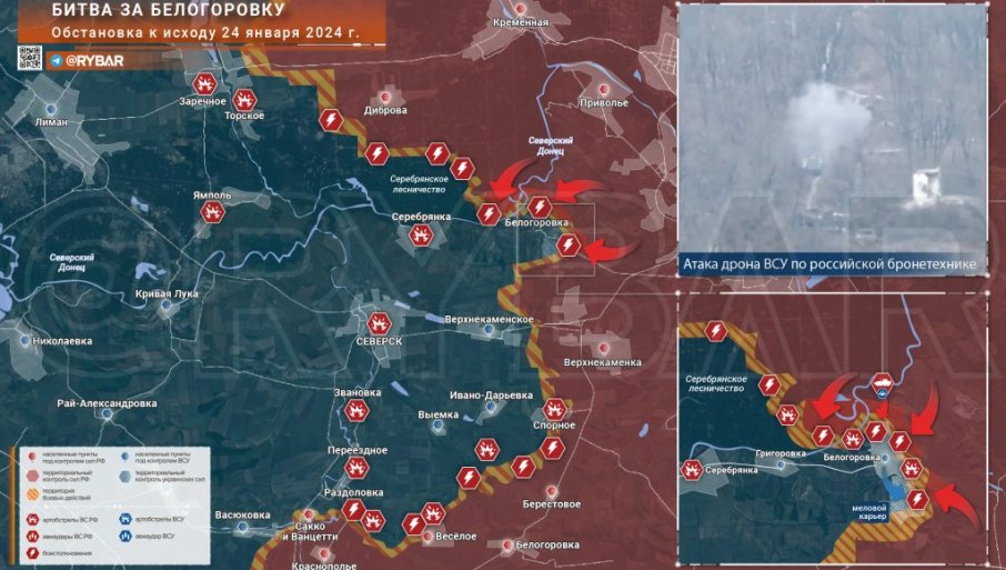 У правцу Северског, руске трупе су успеле да преузму контролу над шумским резерватом северно од Белогоровке. Има и благог напредовања ка западу села, али украјинске формације намеравају да задрже заузете линије.