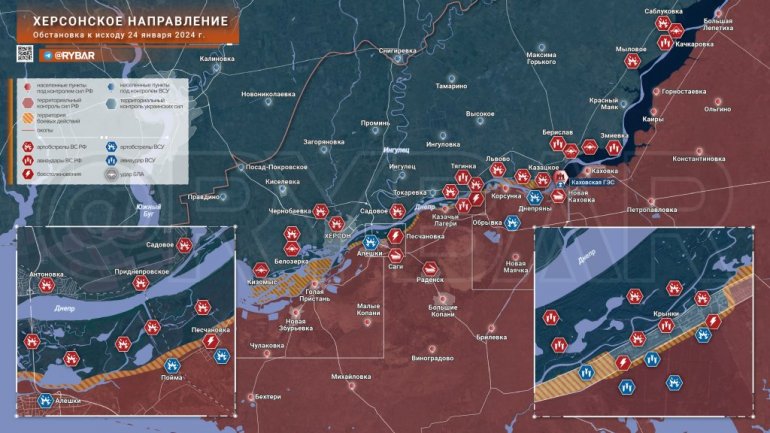На херсонском правцу нема промена. Тешка ситуација малобројних снага Оружаних снага Украјине у Кринкима приморава ВСУ опреми чамце домаћом опремом за заштиту од леда и покуша да повећа снабдевање јединица на мостобрану људством и оружјем. У току су међусобно артиљеријско гранатирање и удари беспилотних летелица.