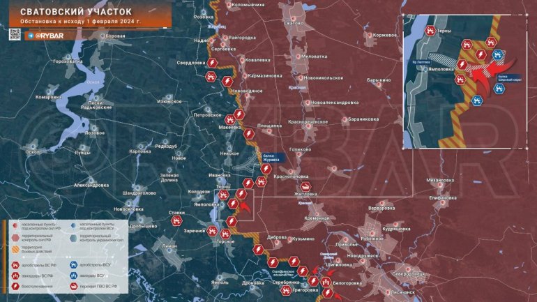Руске трупе напредовале су источно од Ближњег јара и заузеле део Лаптева јара и јаругу Круглаја у области ширине до 3,45 км до дубине од 2,15 км, пишу други украјински аналитичари, умањујући успехе наших трупа.