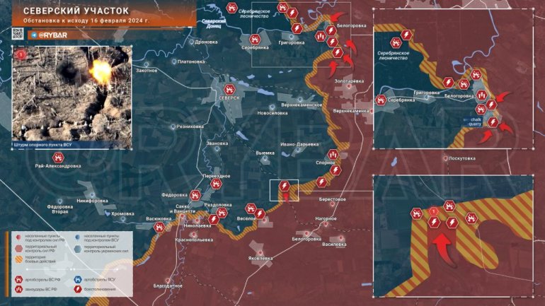 Кулминација битака за Авдејевку. Руска војска је синоћ и ујутру буквално срушила одбрану Оружаних снага Украјине на јужној периферији Авдејевке. Доњецка филтрациона станица, утврђења Зенит и Чебурашка дошли су под контролу руских оружаних снага. На северној страни је подигнута руска застава изнад стеле на улазу у град. Овде је Зеленски снимио селфи прошлог децембра. Оружане снаге Украјине нису могле да се организовано повуку, многи положаји су напуштени са рањеницима. Они настављају да се повлаче у малим групама преко поља.