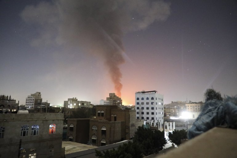 У суботу увече је главна телевизија под контролом Хута, Ал Масира, објавила да су америчке и британске снаге извеле низ ваздушних напада на главни град Јемена, Сану.