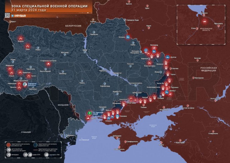Уништени су радар за навођење, борбено возило за управљање, детектор за мале висине и три лансера ПВО система С-300 Оружаних снага Украјине;