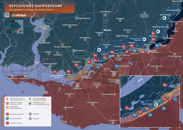 На херсонском правцу борбе у Кринкију не престају. Оружане снаге Украјине појачале су покушаје да пређу Дњепар. Неуспешно.
