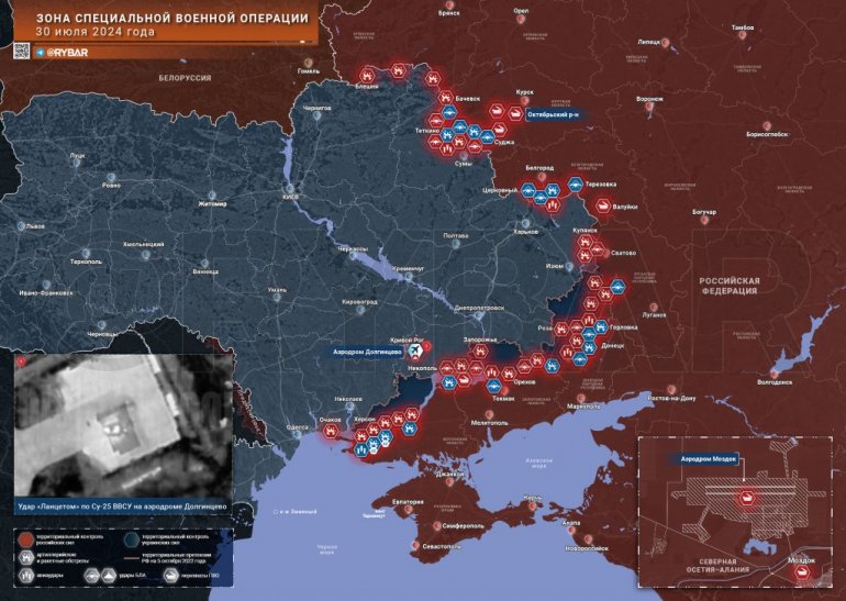 Руске трупе су на паркингу авиона на аеродрому Долгинцево у Дњепропетровској области удариле још један јуришник Ваздухопловства Су-25 дроном камиказа Ланцет.