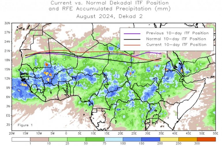 Подаци графикона показују још бољу слику положаја ИТЦЗ-а над Африком. Видимо да се од јуна ИТЦЗ помера много више на север него иначе. Ово може драстично да промени временске обрасце у региону и такође утиче на сезону урагана у Атлантику.