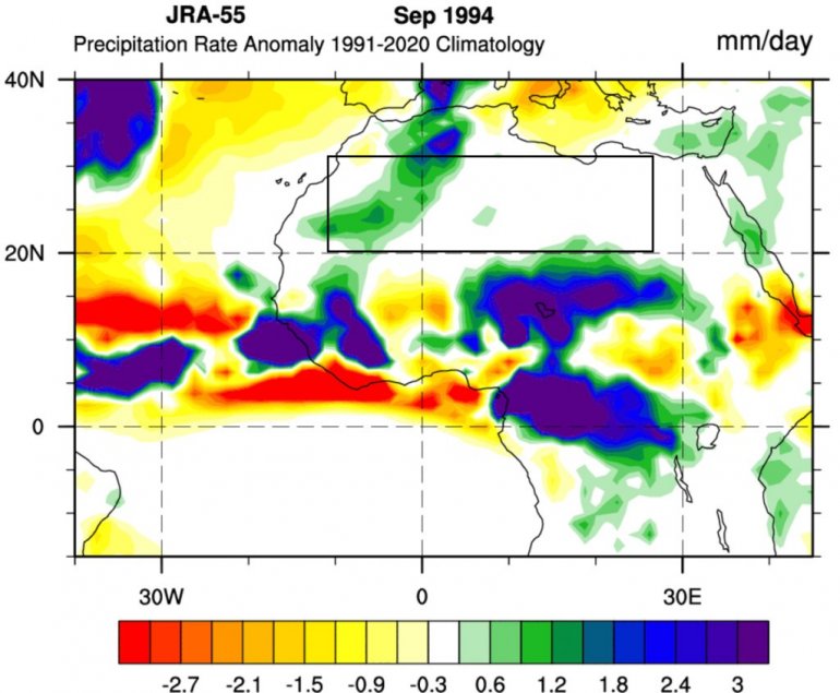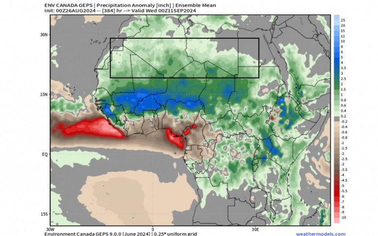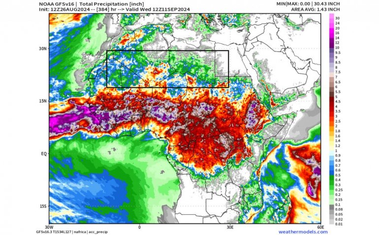 ECMWF проширена аномалија падавина за почетак септембра такође показује велики део пустиње Сахаре под значајним аномалијама падавина. Предвиђа се да ће велики део пустиње имати падавине чак и током следећег месеца.