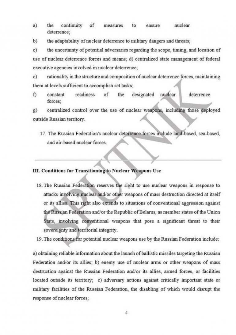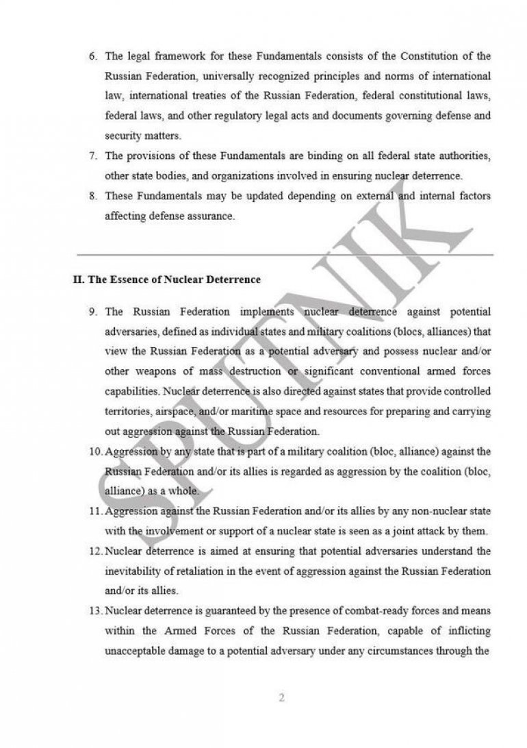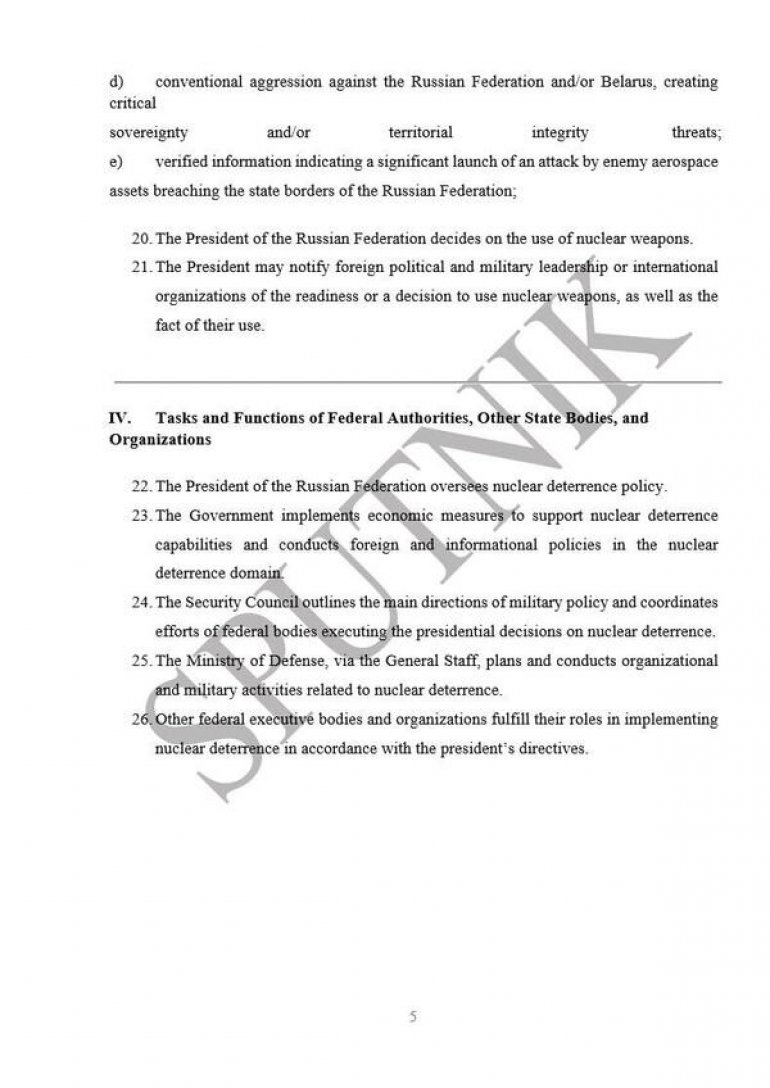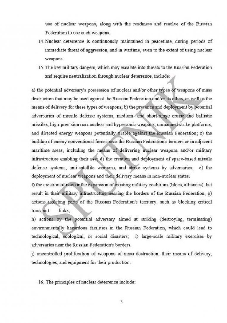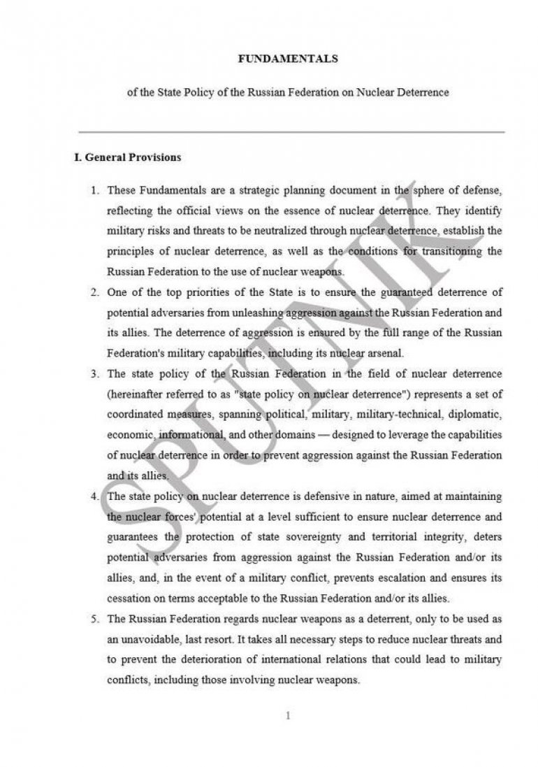 КОМПЛЕТАН ТЕКСТ АЖУРИРЕНЕ НУКЛЕАРНЕ ДОКТРИНЕ РУСИЈЕ