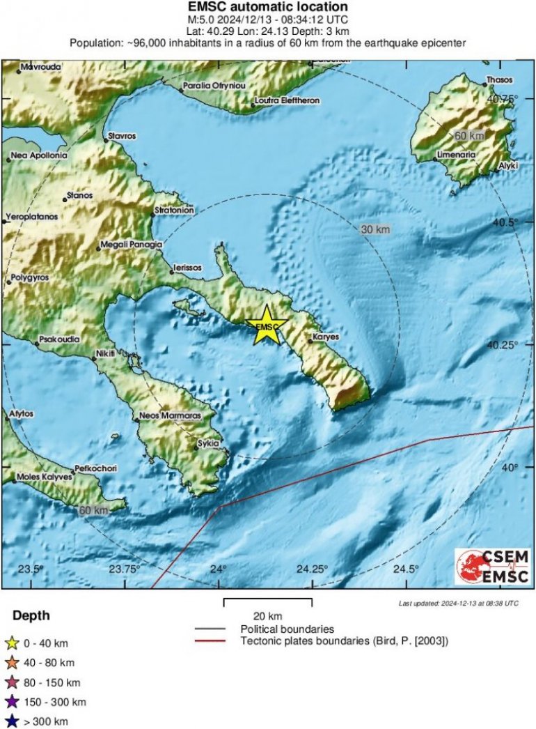 Земљотрес је регистрован на дубини од 4 километра, југоисточно од Неа Роде и 109 километара источно од Солуна.