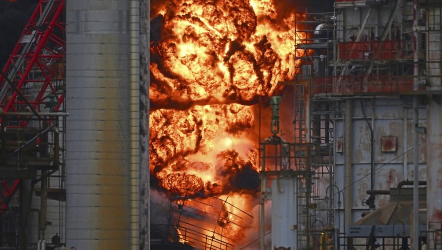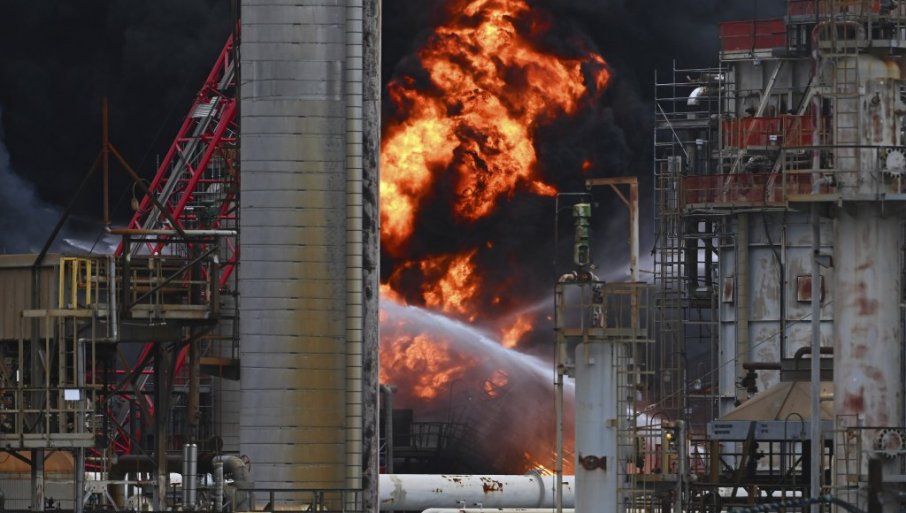 На снимцима који круже друштвеним мрежама види се како густ дим куља из рафинерије, док ватрогасци покушавају да обуздају ватрену стихију.