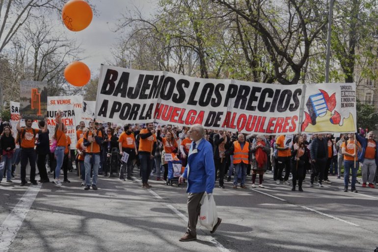 ХИЉАДЕ људи марширало је данас у главном граду Шпаније Мадриду и у више од 30 других градова широм земље у демонстрацијама које су организовали активисти за становање и подржанли главни синдикати Шпаније, због високих трошкова становања.
