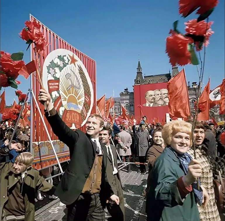 Касније су прославе Првог маја биле пријатније. У свим рејонима Москве ујутро су се чуле лимене трубе из оркестара радних колектива. На Црвеном тргу су дефиловале дугачке колоне, а најстаситији су носили велике транспаренте на којима су се величали рад, радничка класа и, наравно, социјализам. Ми, новинари смо обавезно били позивани на трибине уз зидине Кремља. На Лењиновом маузолеју би се поређали чланови државног и партијског руководства.