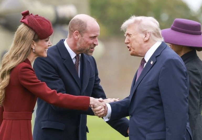 Председнички пар су претходно на свеже покошеној трави дочекали Вилијам и Кејт. Пажљиви посматрачи су приметили да се Кејт у једном тренутку у травњаку заглавила ципела и да јој је супруг дискретно помогао, док је касније Чарлс опомињао Трампа да пази на оштрицу мача постројених војника чијом постуром је амерички шеф државе био очаран.