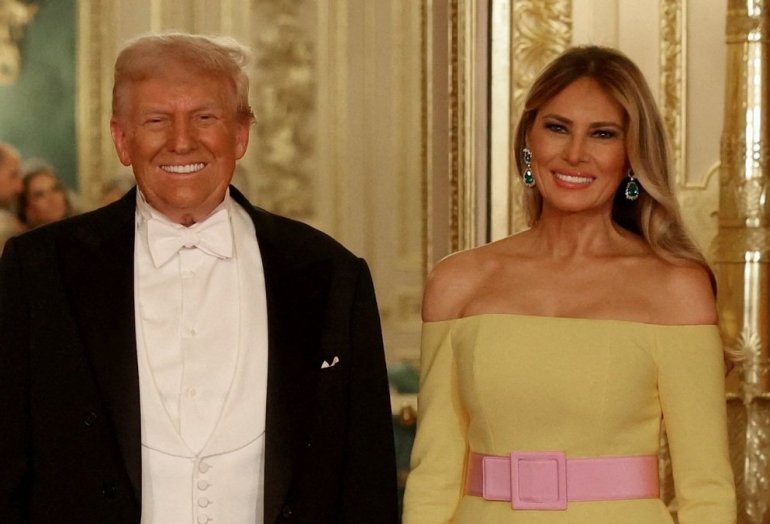 Доналд Трамп у фраку и с белим папијоном и Меланија у дугој жутој хаљини затегнутој каишем уживали су у гостопримству који су им приредили увек елегантни Чарлс Трећи и Камила у плавој хаљини боје мастила.