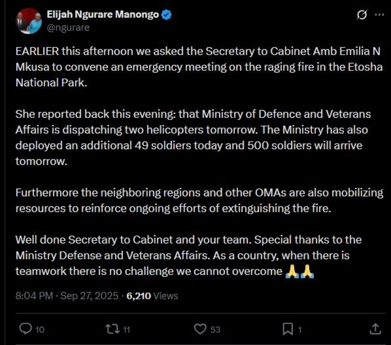На ванредном састанку одржаног у суботу донета је одлука да се пошаље још 500 војника како би помогли ватрогасцима, полицији и добровољцима на терену, потврдио је премијер Тјитунга Елија Нгурар.