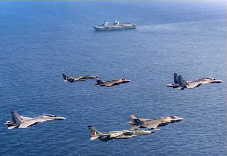 За неколико секунди, десетак индијских ловаца, укључујући осам Су-30МКИ, индијски авион Ил-78 и четири Јагуара, полетели су у ваздух како би пробили одбрамбени штит ХМС Принца од Велса и извршили симулиране ваздушне нападе на водећи британски носач авиона.
