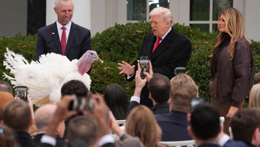 Ћурке чија су имена изабрана путем онлајн гласања, помиловали су Трамп и прва дама САД Меланија Трамп на свечаној церемонији у Ружичњаку Беле куће, пренео је АБЦ њуз.