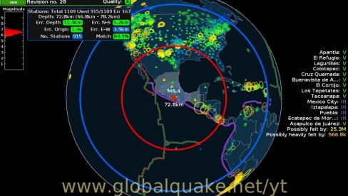 Епицентар земљотреса био је близу пацифичке обале у држави Гереро на дубини од 35 км, саопштио је Амерички геолошки завод.