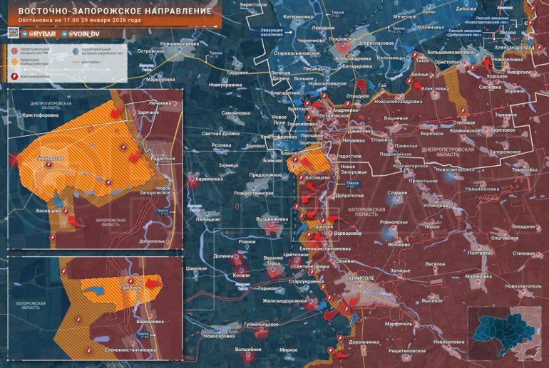 Ситуација на том правцу остаје тешка. Штавише, постоје чак и извештаји да ВСУ доводи резерве за контранапад дуж линије Приморскоје-Новојаковљевка. Још један значајан проблем је Орехов, где борбе на прилазима нису успеле да ослободе Новоданиловку и потпуно окупирају Малу Токмачку.