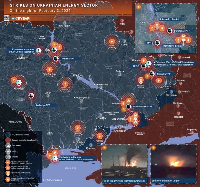 Украјински Телеграм канал Легитимни, позивајући се на изворе, навео је да је тренутни удар упозорење, а не главни напад. Према њиховим тврдњама, Зеленски наставља да одуговлачи преговоре и да поставља нове захтеве кроз затворене канале, због чега је Москва одлучила да демонстрира спремност на ескалацију. Како наводе, енергетски систем Украјине тренутно није у потпуном колапсу, али се налази на ивици, и даљи удари могли би довести до неконтролисаног распада система.