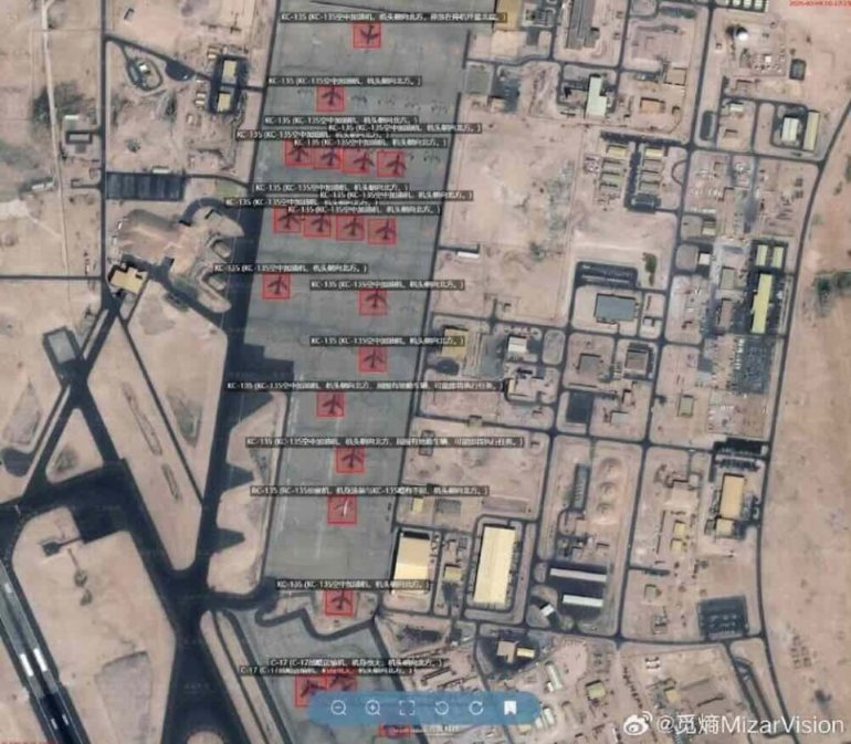 КИНЕСКИ комерцијални сателитски снимци показали су нагло повећање броја америчких авиона за допуну горивом КЦ-135 у ваздухопловној бази Ал Удеид у Катару.