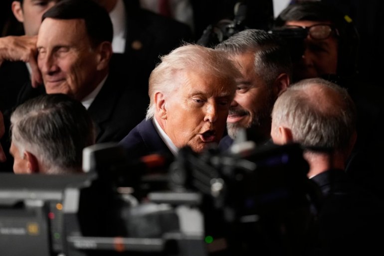 Током говора више пута је улазио у вербалне расправе са демократама у публици, али није директно критиковао судије Врховног суда које су присуствовале, упркос њиховој недавној одлуци у вези са царинама.