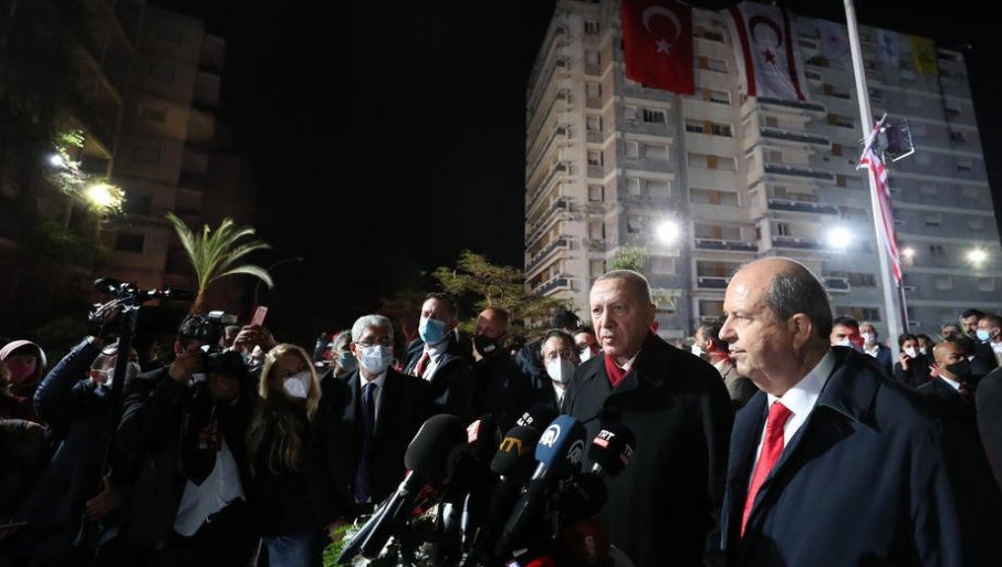 - Турска и самопроглашени турски Северни Кипар више неће толерисати "дипломатске игре" у међународном спору око права на приобалне ресурсе у источном Медитерану", рекао је Ердоган у недељу на Кипру поводом 37. годишњице једностраног проглашења независности кипарских Турака на ратом подељеном острву.